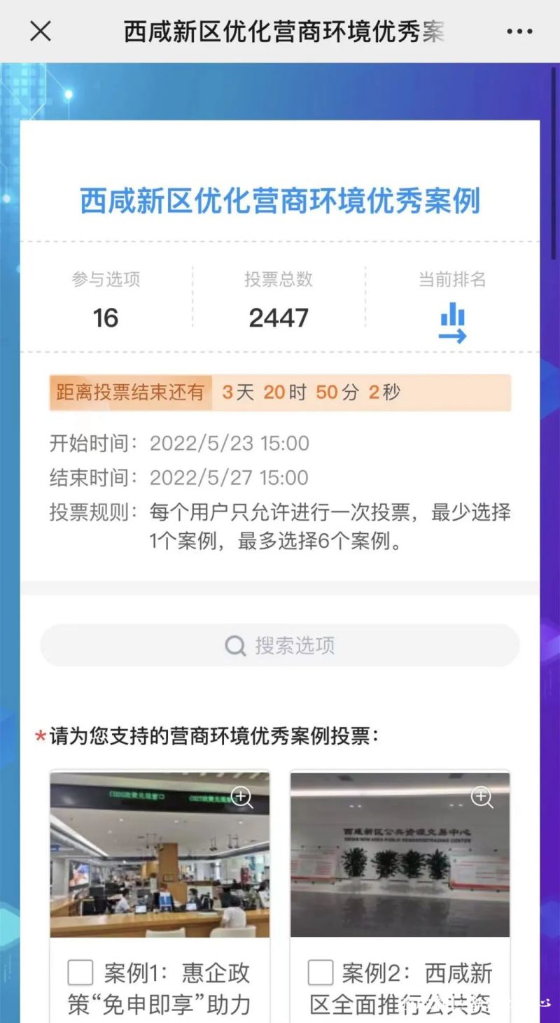 网络投票渠道,即日起,西咸新区2021年度“营商环境优秀案例”评选活动网络投票环节已启动,快来动一动手指投个票吧,为您喜欢的优秀案例加个油!
