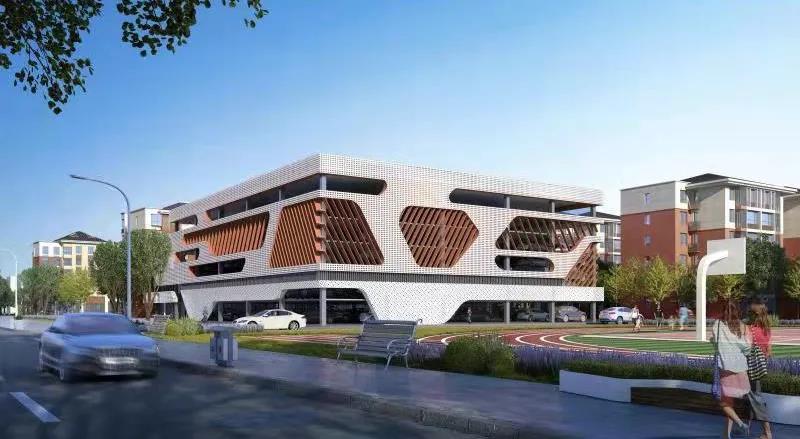 停车楼外观以浅灰色和米白色为主基调,采用“绿色生态”的设计理念,利用墙面花池调节微气候,起到降低室内温度、减少能耗、保护墙面的作用,也可使整个建筑看起来更美观。到2023年,新区将建成这样的立体停车楼6座,可提供2144个车位。