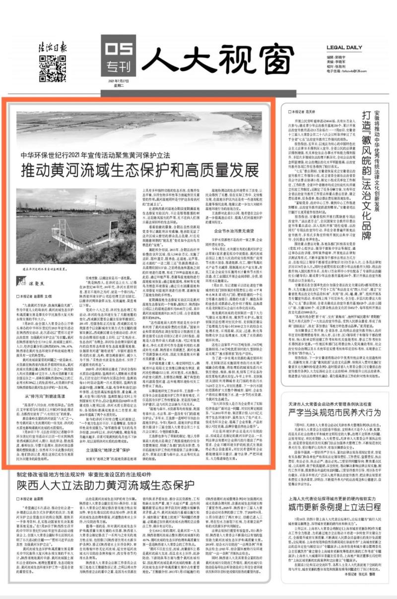 7月26日,新华社刊发《西安治水重塑“八水绕长安”》,7月27日,法治日报刊发《推动黄河流域生态保护和高质量发展》聚焦西咸新区积极推动沣河生态治理,再现河道清水长流,两岸碧绿自然。
