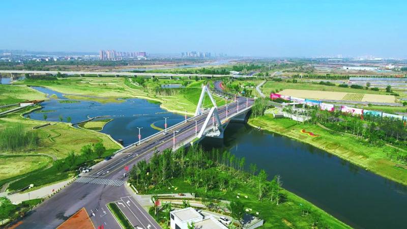 在沣河金湾湿地,站在沣河大桥上眺望,河面宽阔,河水清澈,白鹭、黑鹳等鸟类或悠闲地在河洲散步、栖息,或不时掠过河面,好似一个有着郊野风貌和田园风光的滨水生态景观长廊。