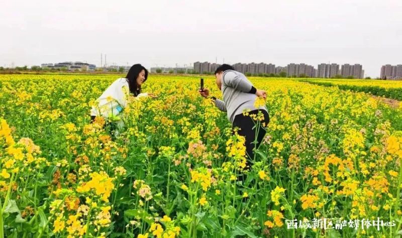 秦汉御花塬,秦汉新城御花塬300亩油菜花田,刚刚进入盛花期。缤纷的七彩油菜花,就像把整个春天的颜色都画在了田野里。春风拂过,荡起层层花浪,眼前一切都变得更加“明媚”。