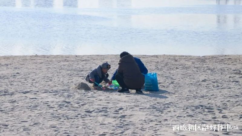 碧水环绕的沣河金湾,是孩子们的“天堂”:阳光、草坪、沙滩……只需一把铲子一个桶,就可以“铲”出一整天的欢乐。