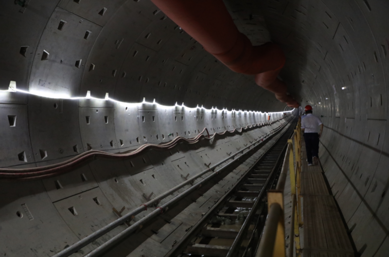 截至目前,全线7座车站主体结构全部封顶;7个盾构区间其中6个已双线贯通,剩余1个正在掘进;全线铺轨工程已完成约36%,站后单位已全部进场,正在组织有序施工。