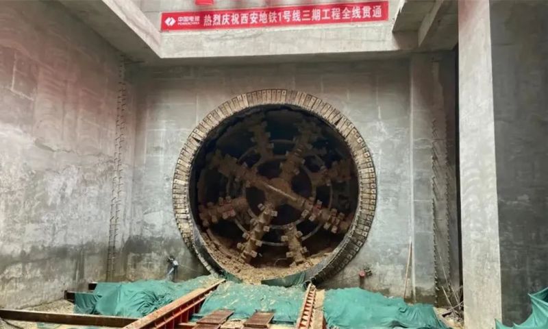 此次贯通的秦都站—宝泉路站区间是1号线三期最后一个盾构区间,依次通过陇海线、徐兰高铁后到达秦都站。在穿越过程中既要保证盾构正常推进,又不能对高铁线路造成扰动,对盾构施工要求极高,是全线的控制性工程和重难点工程。在中国铁路西安局集团的大力支持下,盾构机最终安全、平稳的穿越铁路,轨面总沉降量远小于沉降限值,创造了国内首次地铁成功穿越高铁无砟道床路基段的先例,为今后地铁下穿高铁线路施工积累了技术支撑和宝贵经验。