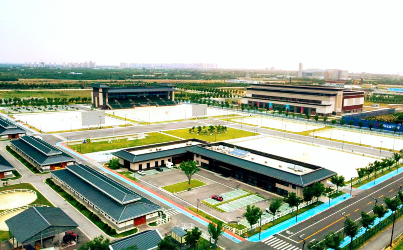 这里建有国际一流的标准马术运动场地,以及容纳330匹马居住的马厩,同步配有马术看台楼、马医院、马球场及训练赛道等。其中,滨水越野赛道在国际马联专家指导下完成设计施工,是马术中心比赛场地的亮点之一。
