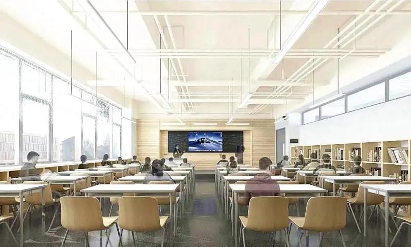 创新港中学设置高中部24个教学班,初中部48个教学班,学生规模达3600人,将于今年9月1日全面开学。