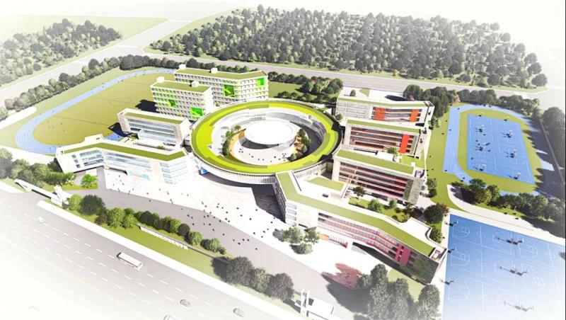 空港实验学校位于慈恩大街中段北侧,占地136亩,总建筑面积约7.5万平方米,设计为十二年一贯制学校,设置66个班(小学24班、初中18班、高中24班),可提供学位3180人。
