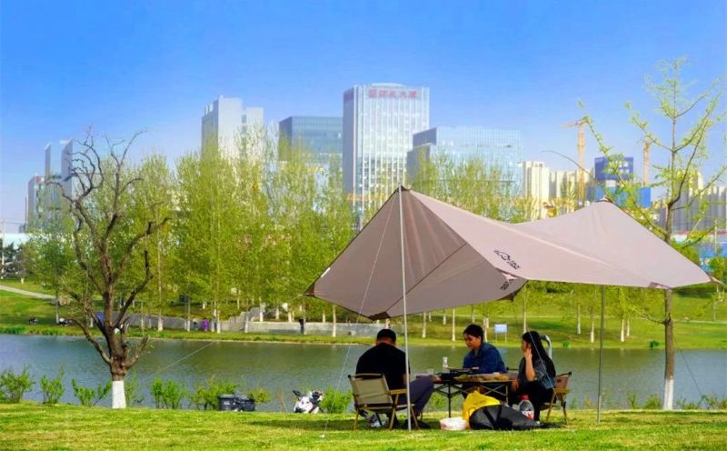 景观区全长5公里,水域面积1400亩,沿河一望无垠的绿地,随处都可以搭帐篷露营。春花烂漫,飞鸟嬉闹,置身其中,可尽情享受大自然的宁静与惬意。如果你是带着小朋友一起来,那么景观区内的白沙滩一定是孩子们的最爱,堆城堡、放风筝,孩子们快乐的笑声,会让这次露营充满童趣。