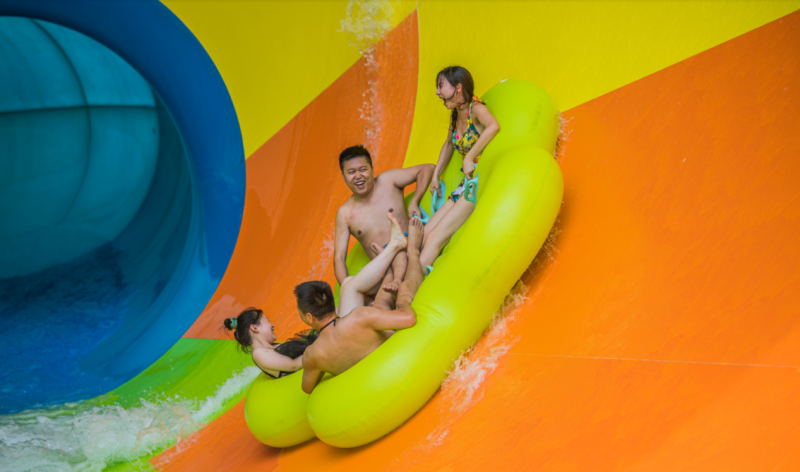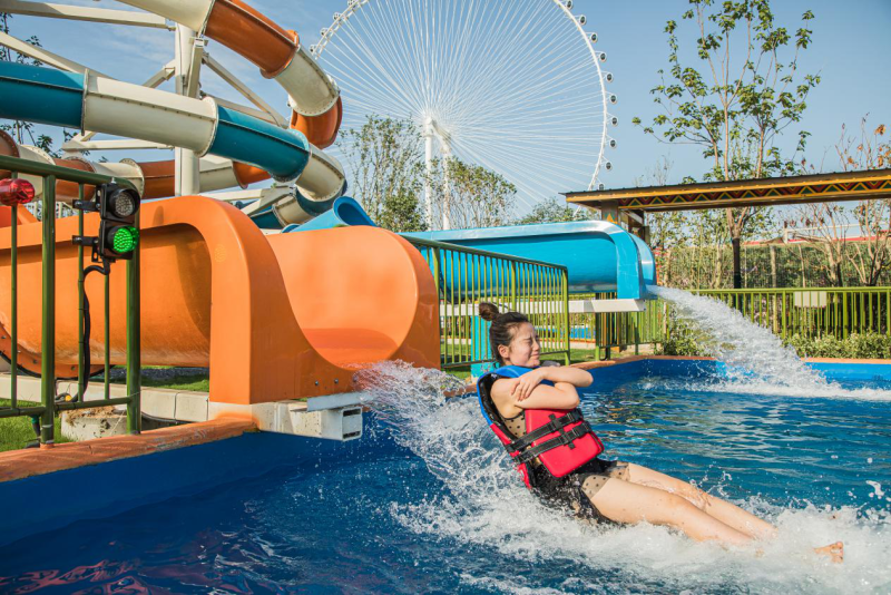 国内落差最大的炮弹滑道,急速滑行一跃坠入3米水池。记得提前想好你的落水姿势。