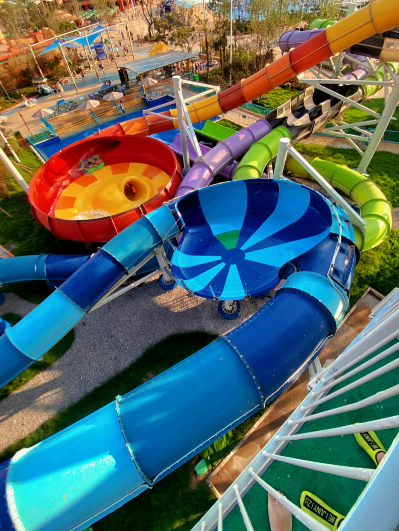 四组设备交叉呈现,这里拥有最复杂的滑道设计,从密闭滑道冲入开敞式碟体来这里,深刻理解“天旋地转”的感觉。