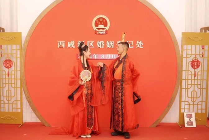 今年“七夕”节恰逢周六,西咸新区3个婚姻登记处“不打烊”,加班为新人办理结婚登记并提供优质服务,发放婚俗改革宣传手册200余份,引导新人树立正确的婚姻观、家庭观,倡树简约适度、现代文明的婚俗新风尚。