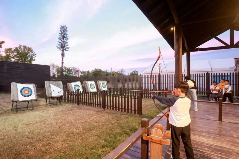 这个国庆假期新开业的“弓骑郡”亲子营地,集游戏竞技、休闲娱乐、亲子互动、露营休憩等多种元素于一体。在这里,小朋友可以戴上头盔,拿起箭矢,秒变超级战士,感受射击的速度感与紧张刺激。