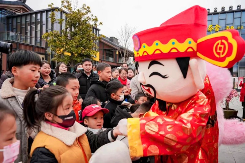 春节期间,财神巡游等民俗活动邀你来体验,“财神们”身着鲜艳红袍、头戴华丽冠帽,笑容满面地在景区巡游,为大家送上祝福和惊喜。威风凛凛的舞狮表演,则为节日增添喜庆氛围。