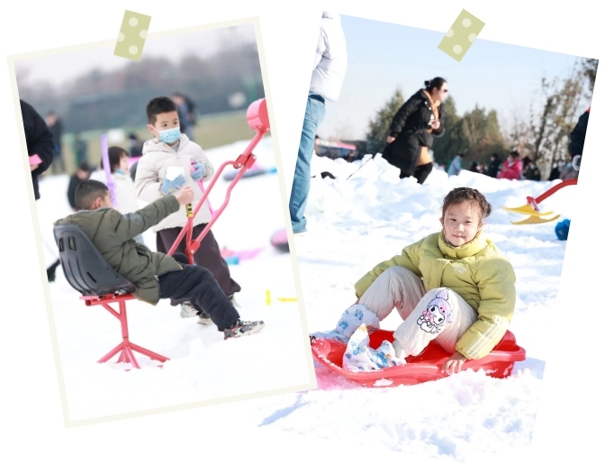 洁白的雪地、趣味十足的滑雪道,还有雪地转转、旋转陀螺、雪地悠悠球、雪地海豚等各种雪上娱乐设施,收获了每个大小朋友的心。