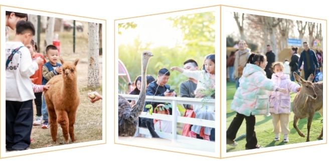 憨态的小矮马悠然踱步、高大的鸵鸟好奇张望、呆萌羊驼眨着大眼睛、可爱的小兔子蹦蹦跳跳,优雅的梅花鹿散步觅食……游客能投喂互动,与喜欢的小动物来一次零距离的亲密接触。