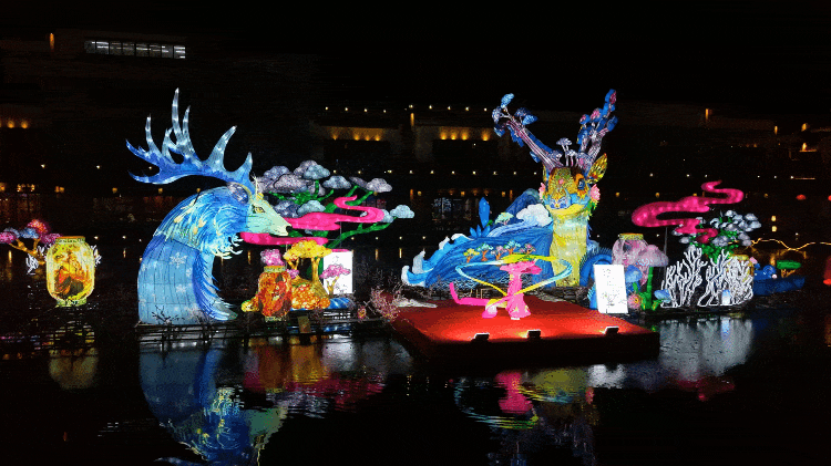 诗经里国风潮尚嘉年华将诗经故事、古典神话、孔阳望舒IP等传统文化元素融入花灯之中,营造出灵蛇献瑞、纤云弄巧、鱼跃于渊、灼灼其华、诗经之海等美妙意境。园区巧妙地将诗经文化、传统年味、国潮文化、神话传说完美融合,成为游客赏灯的绝佳之地,处处流光溢彩,如梦如幻。