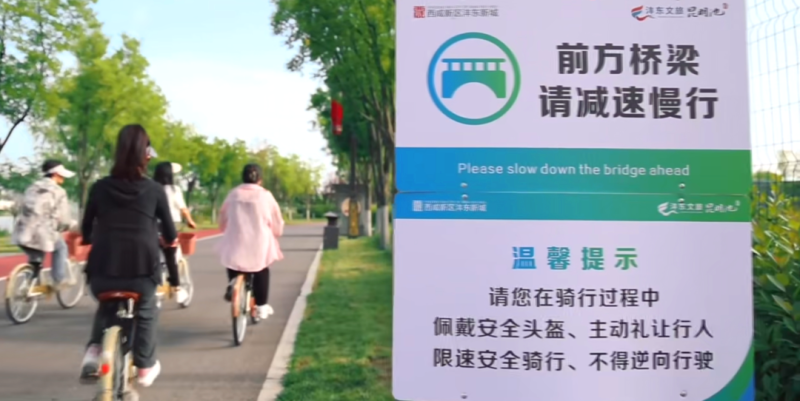 骑行时应遵守沿途设置的各类标识、标线及入园须知,主动避让行人。