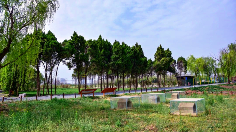 1号驿站:登上二楼的休息观景台,汉惠帝安陵、赵王如意墓和鲁元公主墓的风貌尽收眼底。