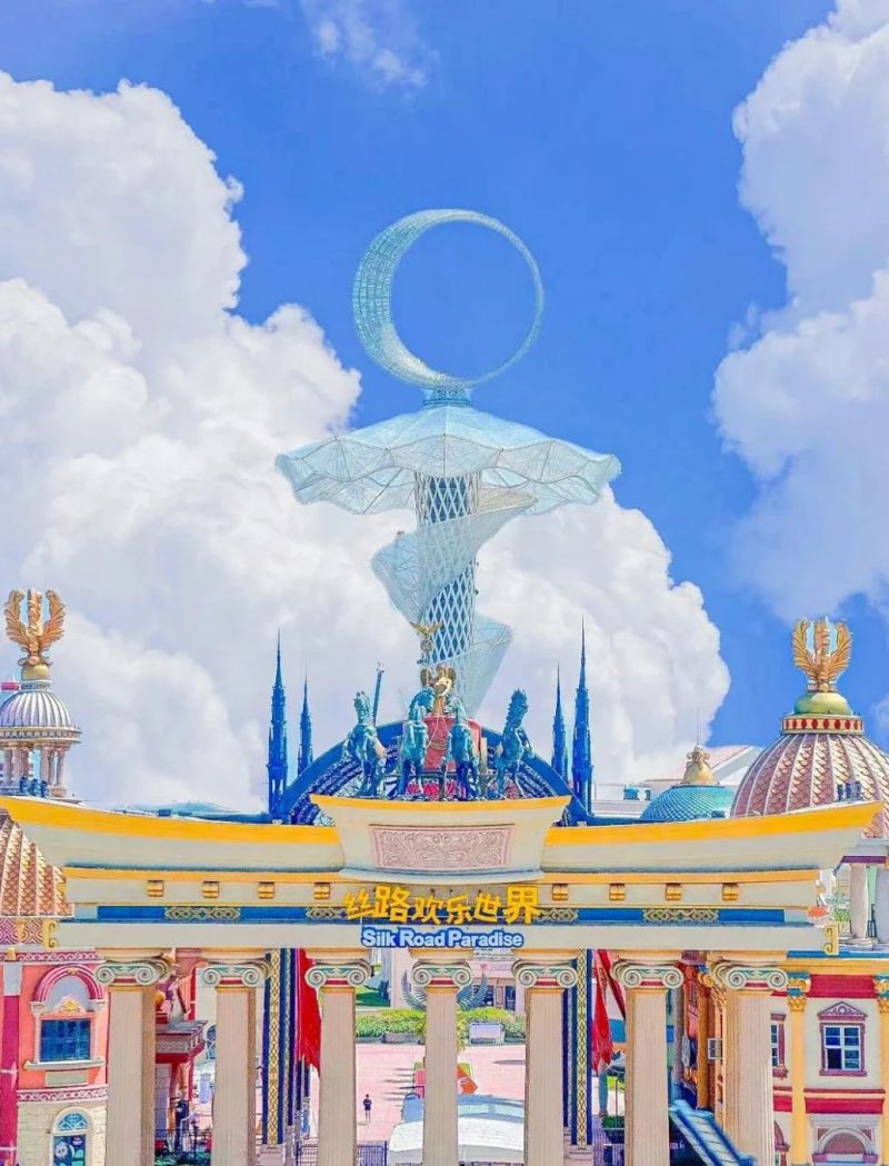 这座以丝路文化为主题的乐园分为七个异域风情街区。园区中,荣耀罗马区的糖果城堡、阳光希腊的蓝白建筑、恒河象谷区的黄金城漂流最出片,日落黄昏乘坐漂流船感受独有的蓝调时刻,仿佛整个世界都安静下来了。