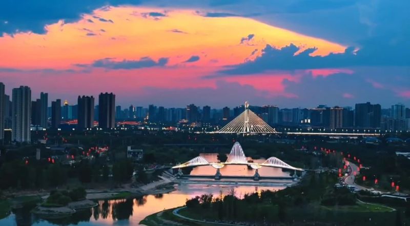 夕阳下的昆明池·七夕公园,湖面在傍晚时分折射出绚烂的橘色调,被网友亲切地称为“橘子海”。前两日雨后初晴,昆明池上空架起了双彩虹,云层裂开的光柱斜照鹊桥,网友称“长安化身‘天空之城’,在昆明池看最美的蓝天白云”。