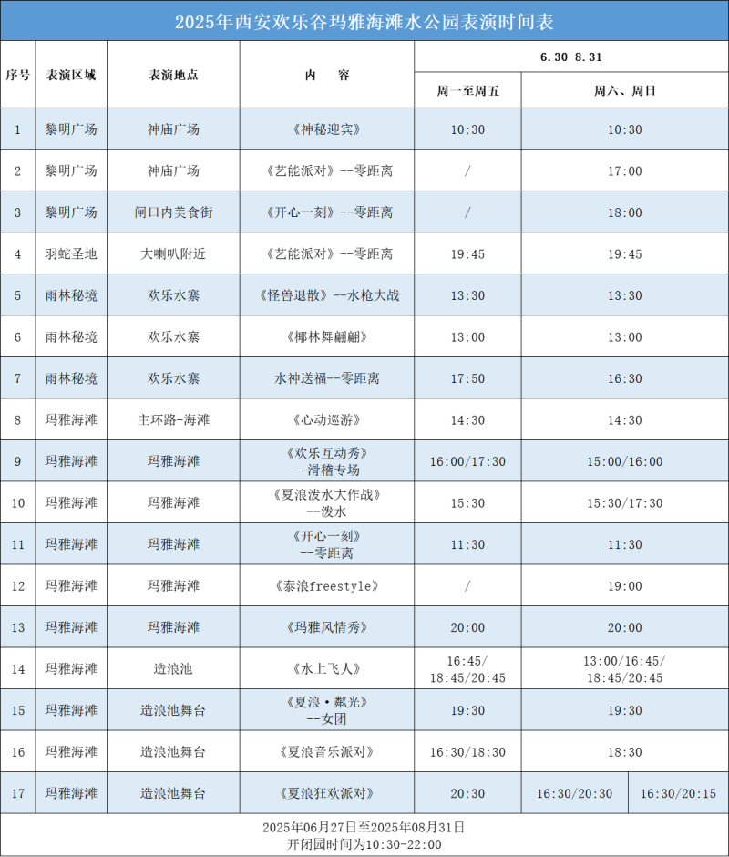 具体演出时间以各景区实际公布为准,快来西咸新区度过精彩夏天吧。