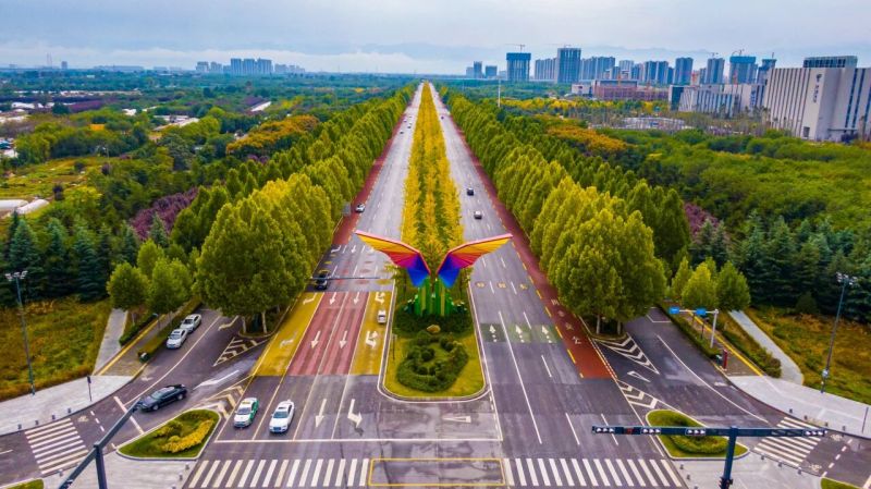 道路两旁的银杏与红枫构成“鎏金配红”的限定美景,间或穿插的绿叶让色彩更有层次,行至中途,“沣西之翼”现代建筑与自然景致相映成趣,既能赏落叶之美,又能感受建筑美学,适合喜欢多元景观的游客。