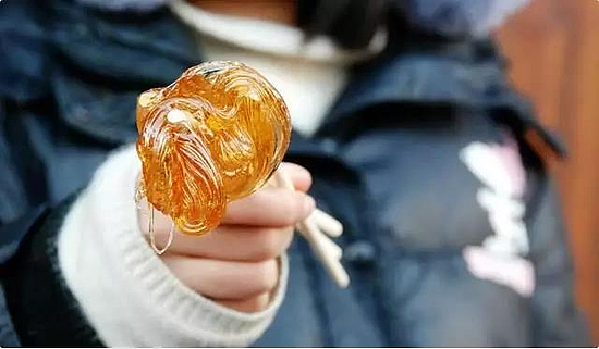 既然说到了糖,那就再来一味。还记得小时候用两根小棍在手中绕来绕去的胶胶糖(麦芽糖)吗?它不但给了我们童年美好的回忆,更是一款营养价值丰富的零食,经常食用还有预防便秘的作用。麦芽糖在诗经里小镇,能用小棍绕的和块状的都有。