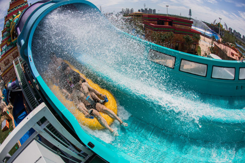 欢乐水寨融合了儿童水仗对决区和获奖滑道的儿童缩小版,可挑战各种通关项目。多条滑道家长可陪玩。炮弹飞人则通过独特的设计,打造出更强劲的速度和紧凑感。游客俯冲滑进加速的弯道,高速通过弯道中心时被高高挂壁飞驰,在2次加速度后进入开敞式滑管出口,最后坠入近3米深的水池。两个滑道上的游客各以不同姿势入水,解锁最佳落水Pose!还有双龙水上过山车,160米长的“激流河段”环神庙而过,让你在这个夏日体验超强的凉爽刺激。