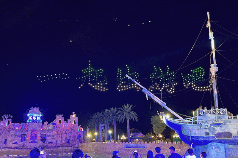 活动现场还进行了西咸新区文化旅游新业态企业授牌仪式,华侨城、茯茶镇、诗经里、乐华城等企业代表上台获颁授牌。伴随着乐华城绚烂的烟花表演,300架无人机在空中飞出“看见多彩西咸”“一起出游吧”“秦创原 看西咸”“创新发展 原梦西咸”等图案,现场气氛火爆热烈。