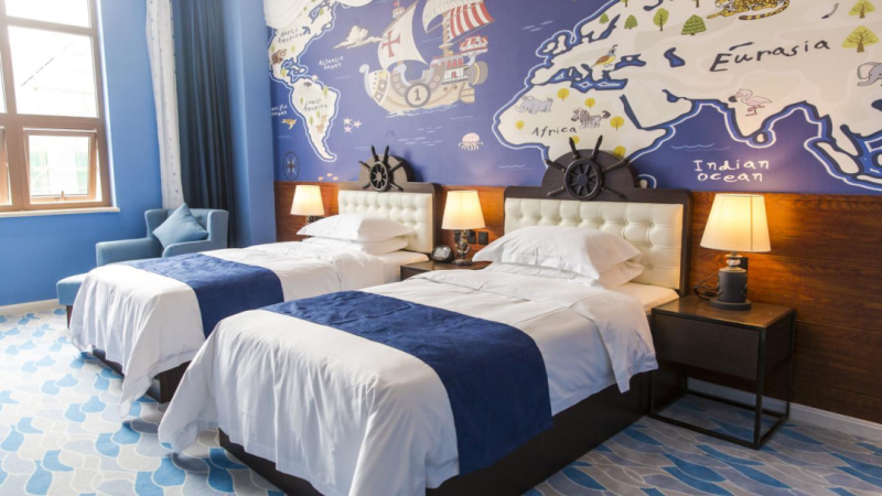 乐华城•88℃温泉乐园旁边的温泉度假酒店将大航海时代和海底世界有机结合,就像一个童话王国。更令游客倾心的是这里的科技感:智能前台24小时待命,十来秒自助刷脸就办好入住;在客房用微信就能预约点餐、洗衣、打扫、叫醒等各类服务,非常方便。