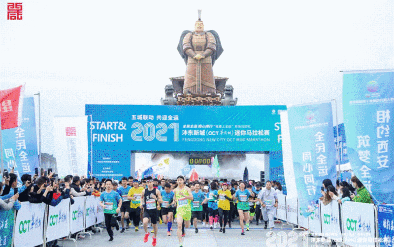 2021年,为响应全民全运的号召,西咸新区举办“五城联动·共迎全运”马拉松系列赛,奉献了一场精彩的跑步盛宴,文化、教育、科技、生态一一呈现,展示了新区的良好形象以及浓厚的全民健身氛围。