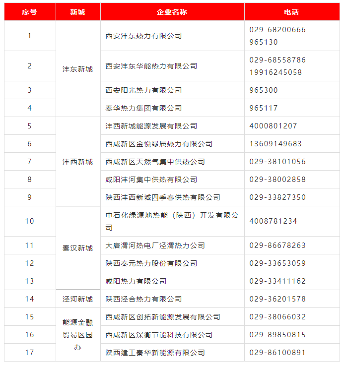 西咸新区集中供热企业咨询服务电话