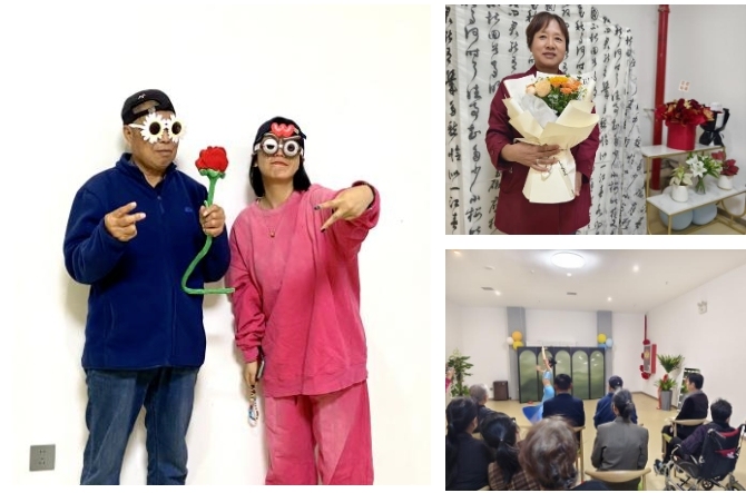 在创意拍照环节,工作人员化身摄影师用精美的背景布和道具,为老人们拍摄了具有纪念意义的照片。老人们或身着漂亮服饰,或手持可爱造型道具,笑容满面地留下了美好的瞬间。这些照片将被制作成相册,作为一份纪念礼物送给老人们。