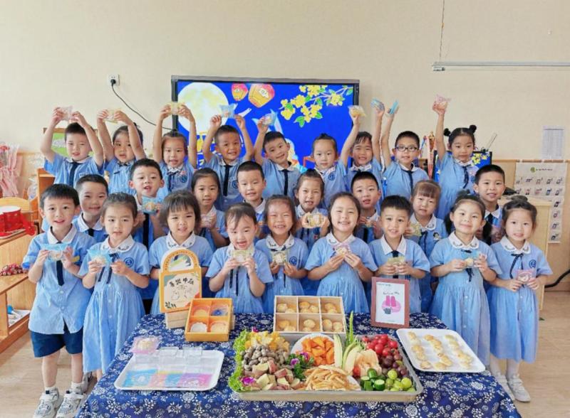 空港花园幼儿园孩子们和老师一起制作月饼,以这种特别的方式让孩子们感受节日的欢乐气氛。