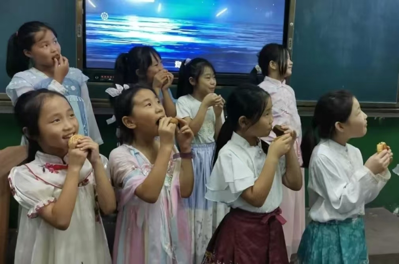 沣东实验小学的孩子们通过诗配画、中秋故事会、节日歌舞等形式喜迎我们的节日·中秋。大家围坐在一起分享自己搜集的与中秋节相关的传统故事和民间传说。《嫦娥奔月》《吴刚伐桂》等故事让同学们听得津津有味,不时发出惊叹和欢笑,整个校园都充满了节日的欢乐气氛。
