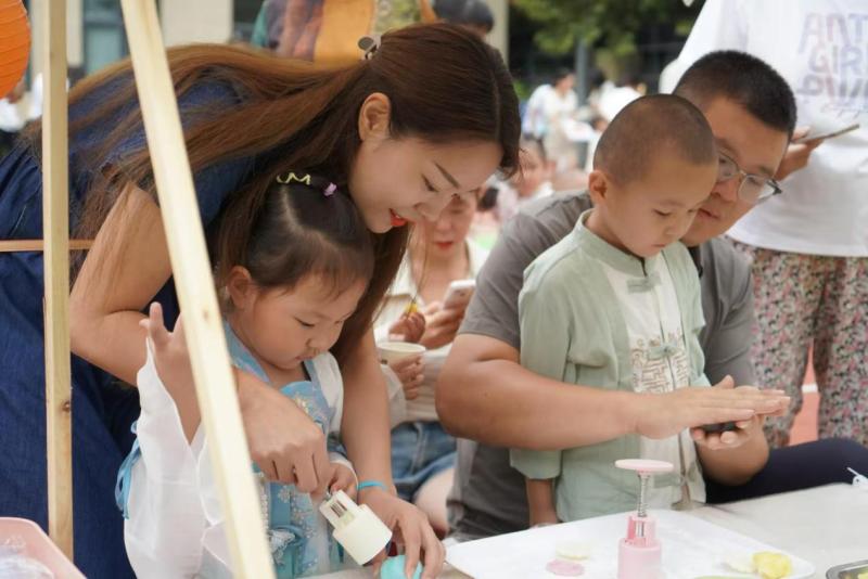 此外,还有国潮中秋沉浸体验环节,包括静态展参观、活动区体验(创意月饼秀、古风灯笼、漆扇体验、香囊 DIY、手工皂 DIY、花草纸 DIY 等)以及打卡留念。此次活动不仅让师生们在欢乐的氛围中感受了中华优秀传统文化的魅力,也增强了对民族文化的认同感和自豪感,为推动新区教育的高质量发展注入了新的活力。