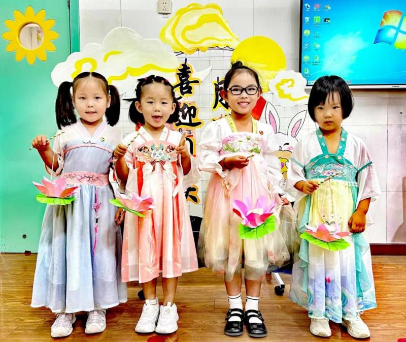西咸新区金湾第一幼儿园的小朋友们沉浸在一场体验感满满的游戏活动中,感受汉服文化,制作祝福贺卡,提灯笼,猜灯谜,做月饼,玩游戏。小朋友们运用自己的方式,通过多角度的互动体验理解中华传统节日,收获快乐的同时懂得了分享与感恩。传统文化的种子在小朋友们心中生根发芽。