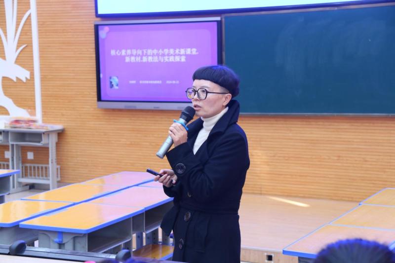 中国陶行知研究会课程课堂改革专业委员会理事长陈会忠致辞:新课标是一次深度的更新与优化,核心是坚持立德树人,艺术教师应充分发挥艺术课程培根铸魂、启智增慧的作用,突出多样性与选择性。