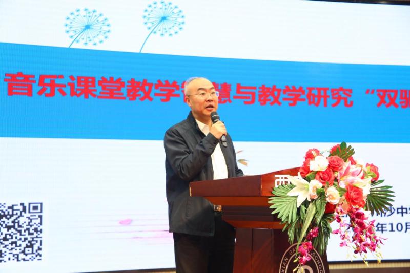 陕西省教育厅教师工作处处长王彬武勉励与会教师加深理解美育教育的新动态、新要求、新价值、新内核,将美育与现代科技结合,启迪学生对世界的想象和感知,放眼未来美育的新趋势、新格局,重新审视美育教学工作。