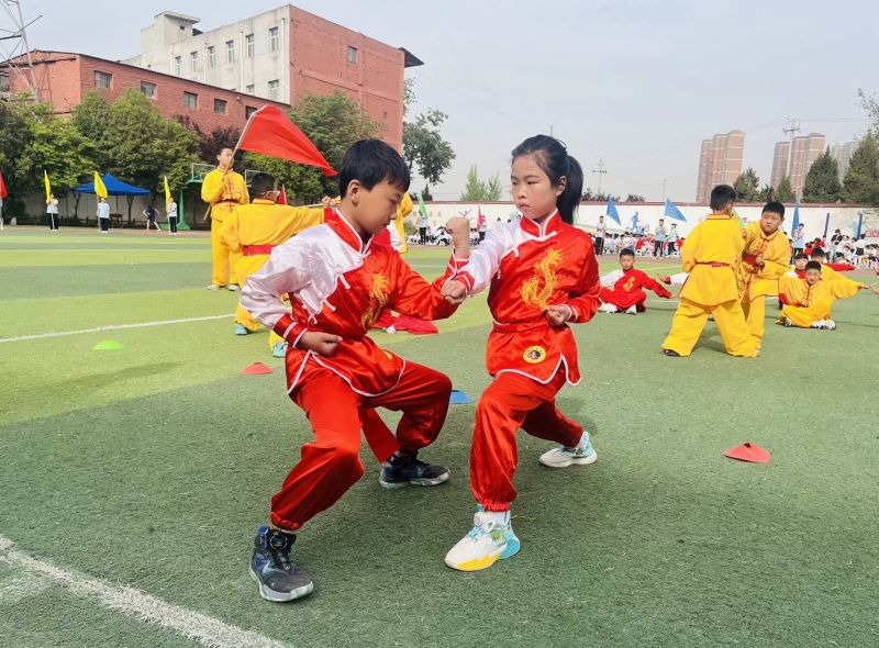 西咸新区空港第一学校将传统功夫扇融入校园体育活动。功夫扇吸取中华传统武术精华,将不同风格的武术动作融为一体,既有自然舒展的太极拳、咏春拳,也有快速有力的长拳、南拳。红色的扇子在开合间沙沙作响,形成了校园一道独特的风景,也为课间操注入了新的活力。