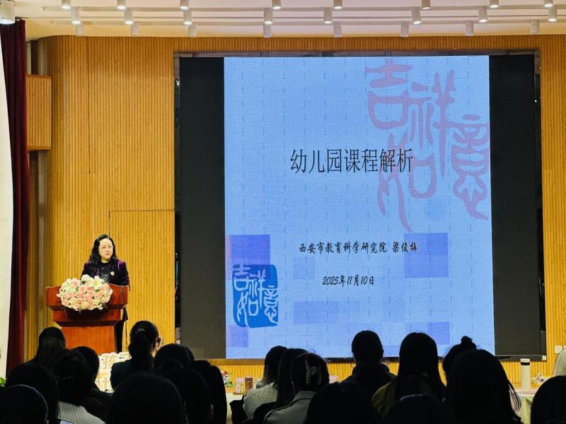活动伊始,沣东第四幼儿园党支部书记、园长刘慧致欢迎词。随后,在专家引领环节,西安市教育科学研究院梁俊梅老师以《幼儿园课程解析》为题,从幼儿园课程概述、领域课程与主题课程等维度,深入剖析幼儿园课程建设的核心要点,为在场园长厘清课程逻辑、优化课程体系提供了专业指导。