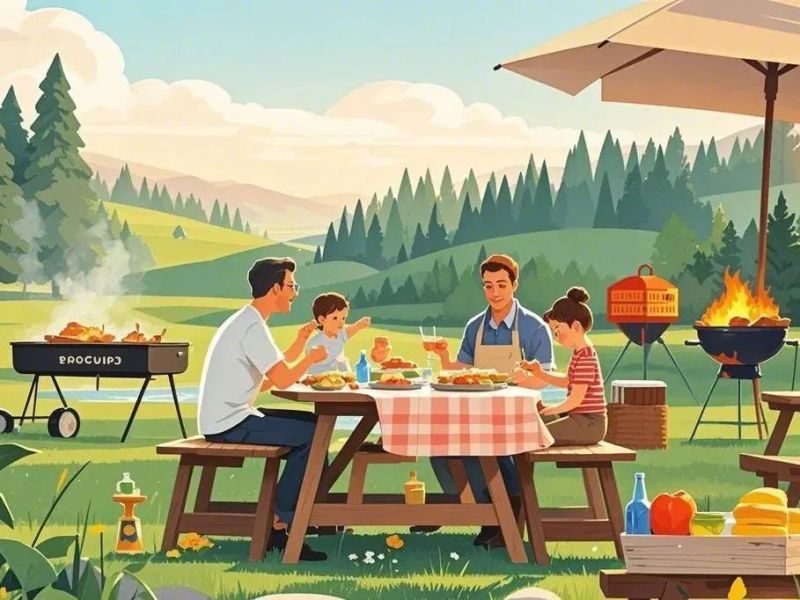 选择空旷、远离易燃物的地点进行野餐,最好是在指定的烧烤区域。