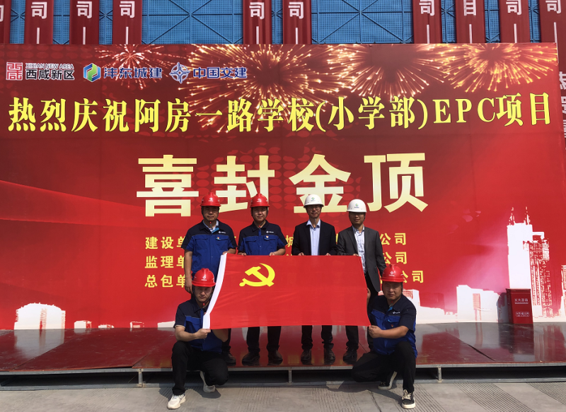 在阿房一路学校(小学部)施工现场,鲜红的党旗在施工一线高高飘扬,挖掘机、推土机、洒水车各种工程设备不停运转,施工人员正在进行主体结构施工作业。据项目现场负责人介绍,随着6月份项目的全线开工建设,防水、主体等施工队伍陆续进场,加快推进工程基础及主体各工序建设,建设双方8名党员组建突击队,定期召开“党员碰头会”,及时处置施工中的疑难杂症,保证各项施工的顺利进行,并结合“三岗”创建活动,项目党员根据自身岗位职责和履职标准,作出安全承诺,针对施工中的安全关键,在施工防护,质量控制、安全防控等关键环节,设立党员防控点和青年突击队,把重担交给现场党员,切实把各项工作融入“党建赋能磐石铸“城”党建品牌。目前,经过4个多月的建设,阿房一路学校(小学部)项目已于10月10日顺利完成主体封顶,为整体项目按期建成,顺利开学奠定了坚实基础。