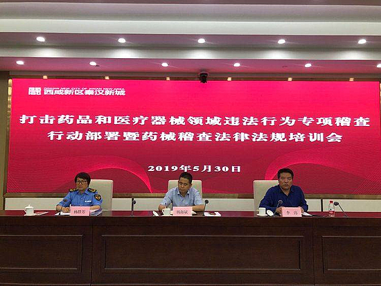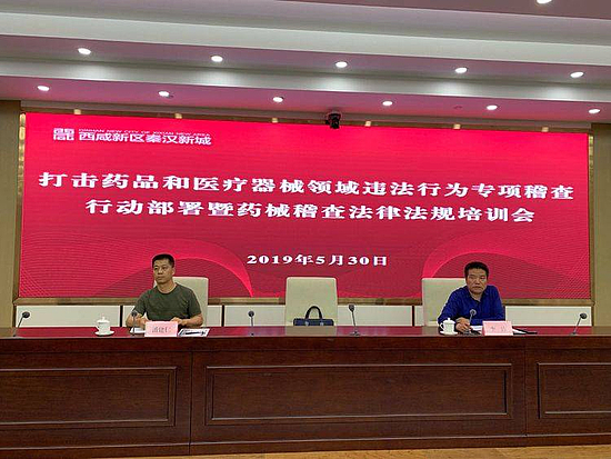 为贯彻落实新区局《关于开展打击药品和医疗器械领域违法行为专项稽查行动实施方案》工作部署,进一步推进“扫黑除恶”专项斗争和“打击整治破坏秦岭野生动植物资源违法犯罪”专项行动工作开展。5月30日下午,秦汉市场监管分局召开打击药品和医疗器械领域违法行为专项稽查行动部署暨药械稽查法律法规培训会。西咸新区市场服务与监督管理局秦汉新城分局副局长兼食药分局局长杨海斌出席会议并讲话。会议由食药分局副局长李玮主持。