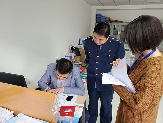 扫黑除恶专项斗争是一场人民战争,广大经营者的知晓和支持,是市场监管领域扫黑除恶工作能否取得战果的群众基础。在走访中,工作人员着重在企业办公区域、经营户门店醒目位置张贴、悬挂扫黑除恶宣传彩页、线索举报通告,通过发放宣传资料、工作人员宣讲解答,进一步提升企业及个体经营户对扫黑除恶专项斗争的知晓程度;通过填写《调查问卷》、《入户走访登记表》的形式,询问企业及个体经营户在生产经营过程中是否遭遇黑恶势力滋扰、是否存在干扰、阻拦施工、强迫交易、扰乱市场秩序现象,告诫经营者遇到此类情况或发现涉黑涉恶线索及时向新城及分局扫黑办反映,凝聚社会力量,积极支持扫黑除恶工作,共同参与到同黑恶势力作斗争的人民战争中来。